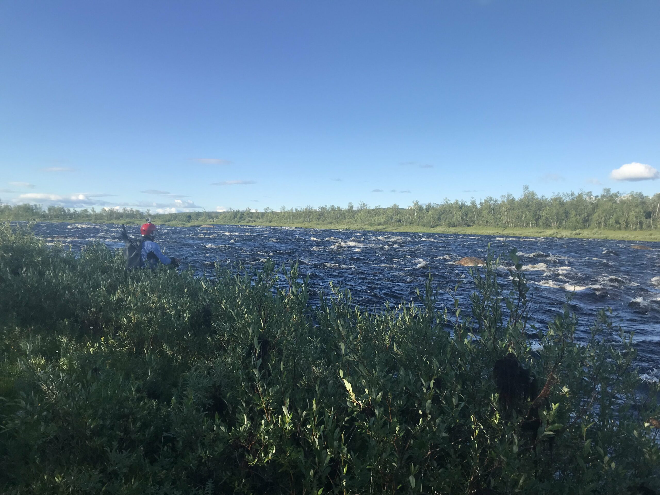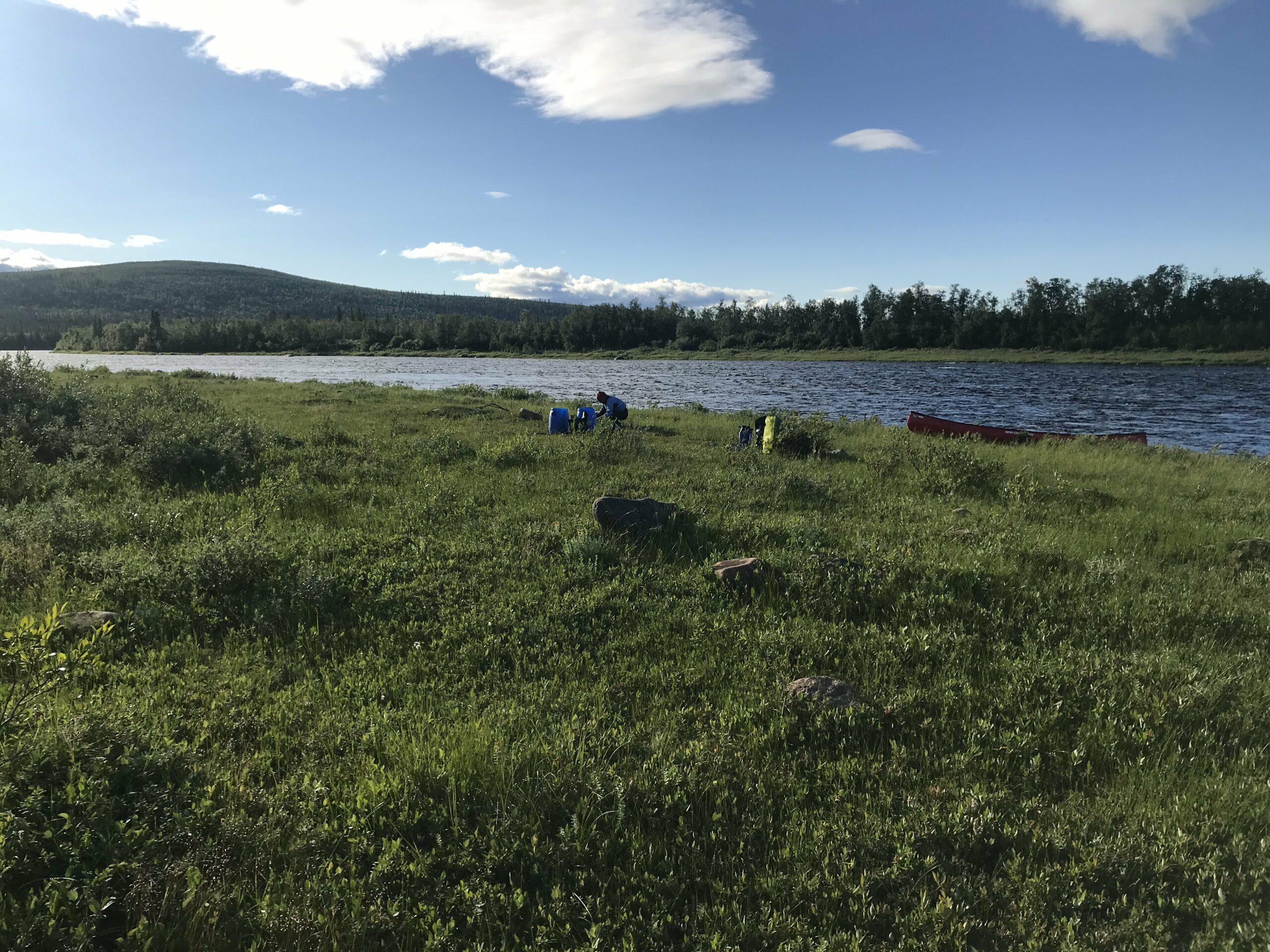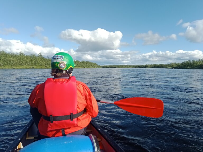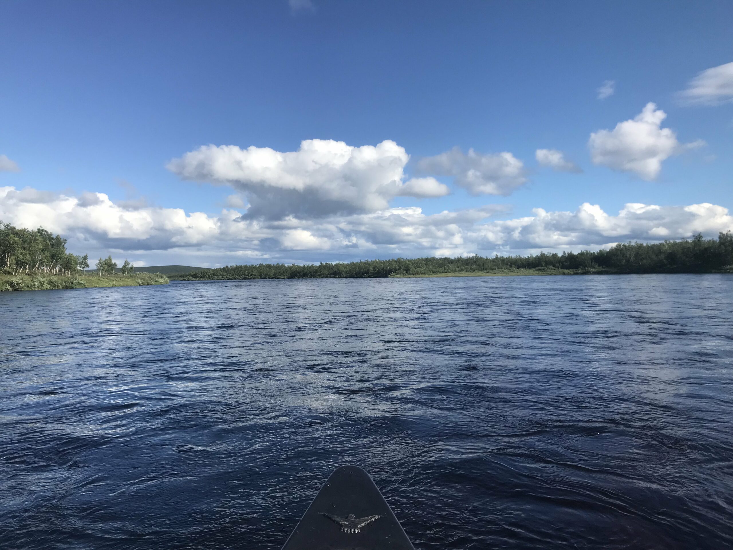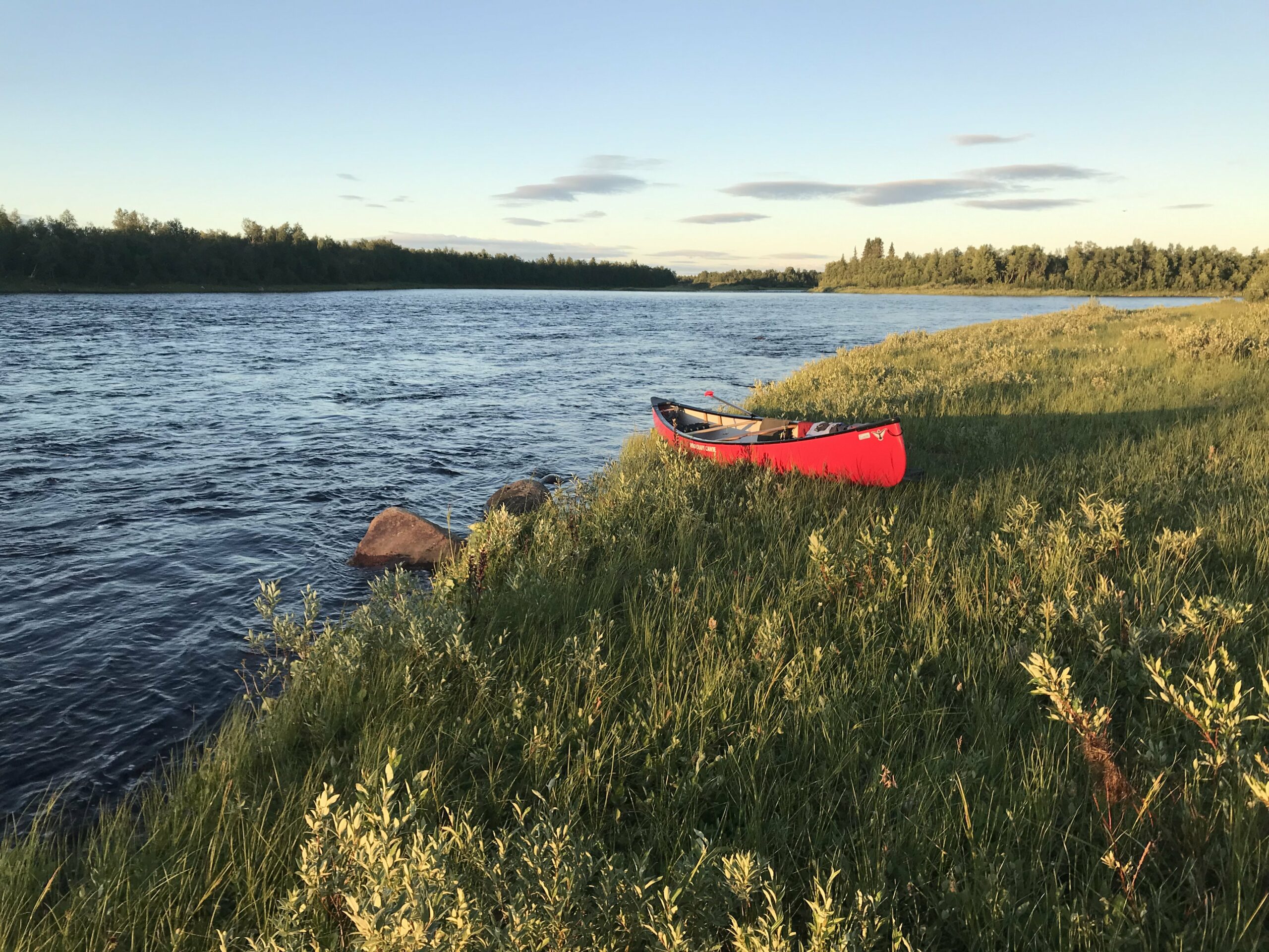 La seule question qui vaille quand nous arrivons en Laponie « est-ce qu’il y a des moustiques cette année ? » reçut une réponse concise mais claire : « c’est une année assez extrême ». La météo annoncée était exécrable (elle le fut en bonne partie). Le niveau d’eau était haut pour la saison. Pour couronner le tout, nous n’avions dégotté sur place qu’un canoë de 16 pieds de long, un peu court pour nos deux gabarits et le chargement conséquent d’une expédition en autonomie, en milieu isolé, par temps froid et à seulement un bateau… La chose requerrait pas mal de finesse. Il allait falloir prendre nos marques.
