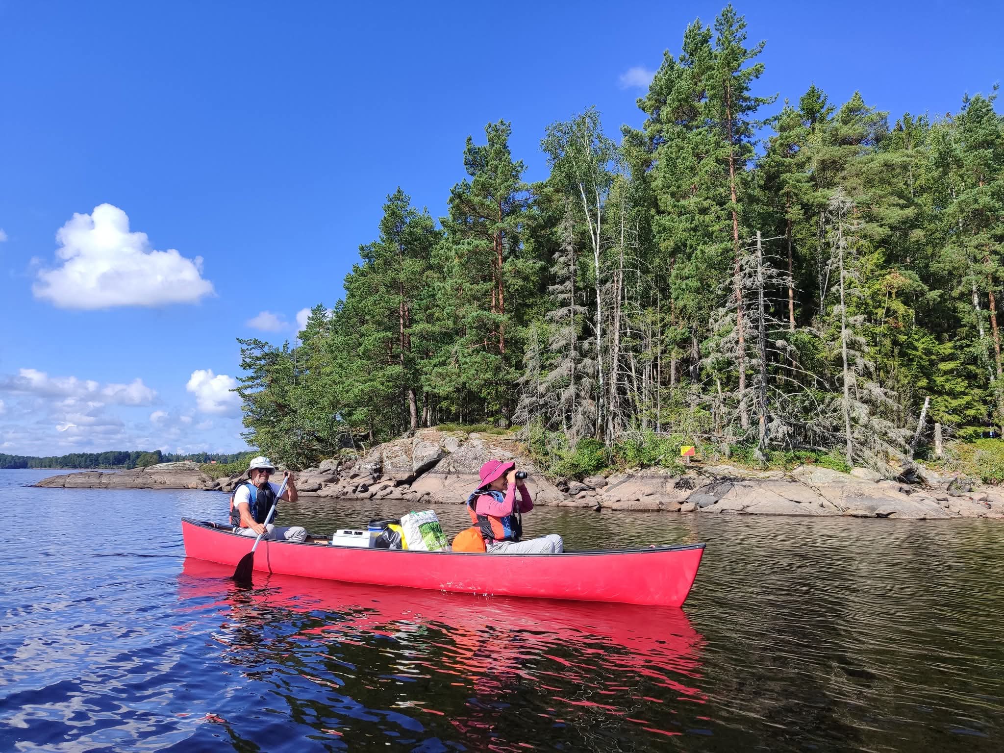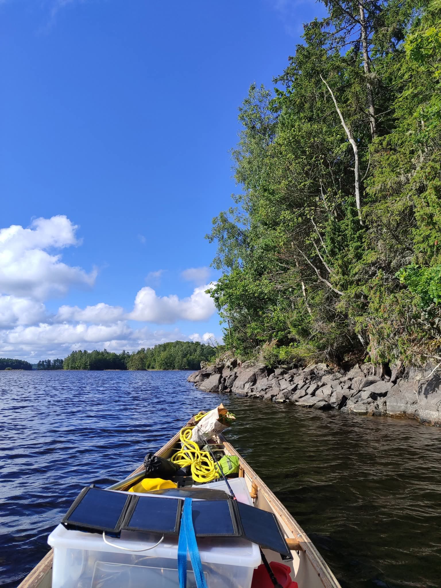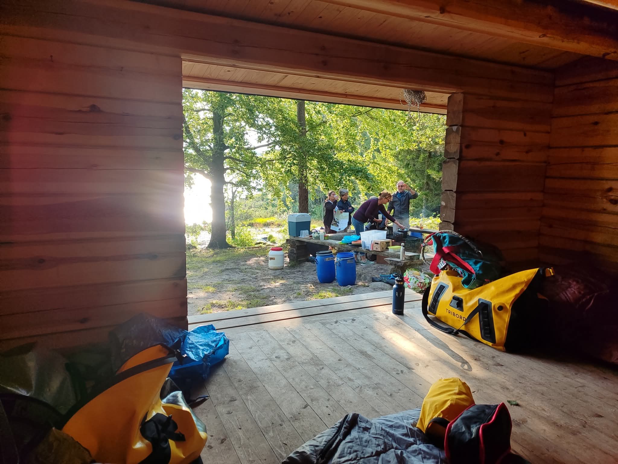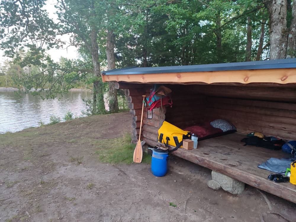 Nous nous sommes mis à l’eau. Bientôt, les questions du type « par où doit-on passer ? » ou « est-ce bien ici qu’il faut diriger le canoë ? » se sont effacées naturellement. Un bonheur immense. Il ne restait plus qu’à cheminer, à l’écoute de l’eau et du vent, jusqu’au shelter (abri traditionnel des pays du Nord de l’Europe) du soir où monter le camp. Pagayer est devenu un simple exercice d’équilibre, presque un automatisme, laissant les yeux libres de se poser où bon leur semblent, sans contrainte ni contrôle.